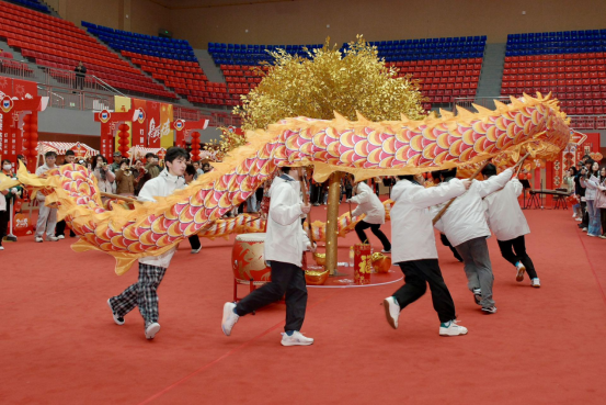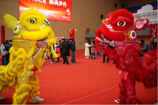 元宵佳节,舞龙舞狮是不可或缺的文化符号。此次活动中的舞龙舞狮表演由体育学院团队承担,他们以精湛的技艺为全校师生献上了一场精彩演出。活动现场,一条金色巨龙腾空而起,尽显“神龙”的矫健与灵动;瑞狮紧随其后,翻腾跳跃,引得现场师生阵阵欢呼。体育学院学子们的出色表现,不仅展现了传统文化的魅力,也为校园增添了浓厚的节日氛围。