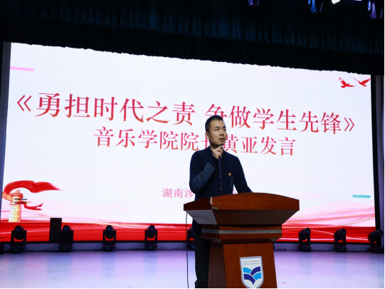 随后,音乐学院院长黄亚发表讲话。黄亚院长充分肯定过往学生干部群体的工作成果,结合新学期学院发展规划,对全体学生干部提出三点殷切期望:一是锚定时代坐标,争做思想与行动上的先锋。要求全体学生干部深刻领会会议精神,认真落实各项工作部署,主动担当作为,当好学院工作的执行者、同学服务的贴心人。二是扛起时代责任,统筹学习与工作发展。强调学生干部要立足本职岗位,平衡好学习与工作的关系,不断提升自身综合能力,在实干中锤炼过硬本领。三是勇立时代潮头,凝聚团队协作合力。鼓励学生干部加强团队协作,以务实作风服务同学成长,以积极行动助力学院高质量发展。