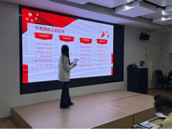 团课上,陈雨祺以时间为脉络,系统梳理了中国共青团从诞生、发展到壮大的光辉历程,重点讲解了共青团在党的领导下,在革命、建设、改革各个历史时期所肩负的使命与担当。让大家深刻认识到共青团作为党的助手和后备军的重要地位与责任。