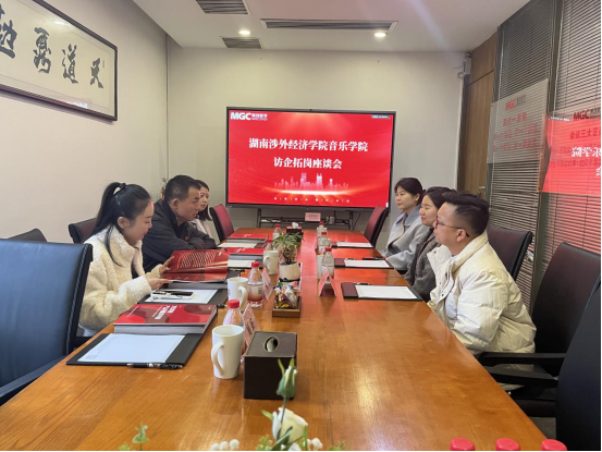 3月19日上午,湖南涉外经济学院音乐学院院长黄亚带领声乐系主任张妮、学前系主任欧薏蔓、就业干事周妍一行,前往湖南美创影视传媒有限公司开展访企拓岗专项活动,并就共建音乐科技新型专业等事宜进行深入交流。