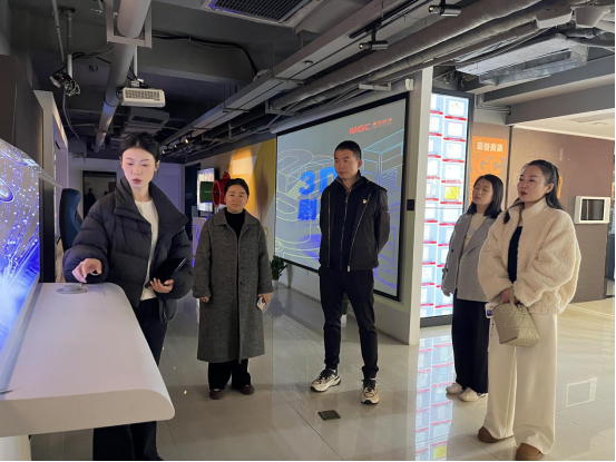 学院一行参观了公司的影视制作工作室、音效合成室、后期剪辑室等核心业务部门。公司负责人详细介绍了公司的发展历程、业务范围、项目成果以及未来发展规划。公司在影视制作、广告策划、数字媒体传播等方面成绩斐然。