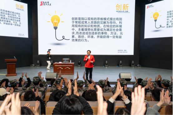 分享中,刘定结合自身从涉外学子到创业先锋的成长经历,用生动的案例、真挚的话语拆解青年成长的关键密码。谈自信,他剖析因素、引典明志,勉励学子直面自我、坚定自信;谈目标,他分享“三个明确”法,指导学子清晰规划成长路;谈创新,他结合时代趋势,倡导学子打破定式、大胆探索;谈坚持,他以自身经历诠释初心之贵,深深触动在场学子。分享过程中,嘉宾还与现场学子展开互动交流,耐心解答学子在学习、生活、职业规划中的困惑,现场氛围热烈融洽,掌声不断。