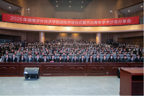 为强化青年思想引领,筑牢团学育人根基,发挥杰出青年榜样示范作用,引导广大青年学子坚定理想信念、勇担时代使命,3月19日晚,湖南涉外经济学院2026年团校开班仪式暨杰出青年学术沙龙分享会在世纪讲坛顺利举办。各学院杰出青年候选人、各院校级组织学生干部、全体入团积极分子齐聚一堂,共赴这场青春之约,在榜样引领中汲取奋进力量,在思想碰撞中明晰成长方向。