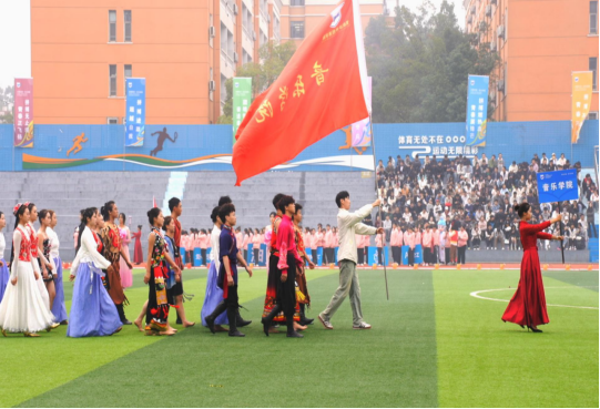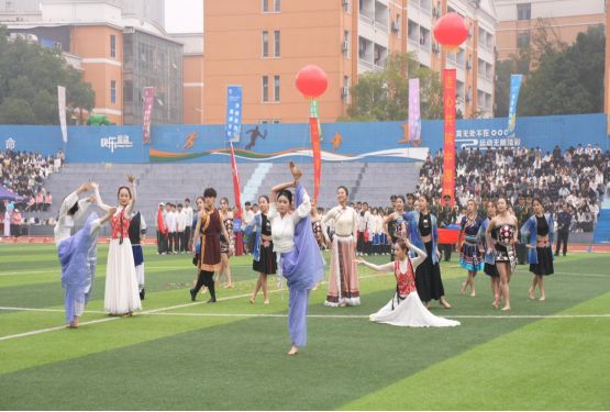 运动会开幕式上,音乐学院的学子们带来了极具民族特色的表演。他们身着各民族绚丽服饰,在绿茵场上翩然起舞,维吾尔族舞蹈的灵动旋转、藏族舞蹈的豪迈舒展……不同民族的舞蹈元素交融碰撞,仿佛一幅流动的民族艺术画卷。学子们用精湛的舞姿,诠释着对多元文化的传承与热爱,也为运动会拉开了极具艺术感的序幕。