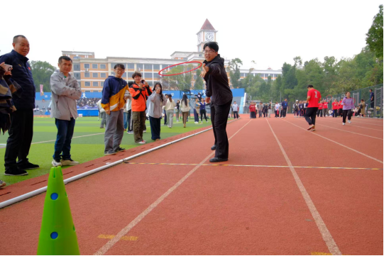 除了个人竞技,趣味团体项目更是将赛场氛围推向高潮。教职工们参与的呼啦圈接力、趣味投掷等项目,让大家在协作中感受运动的乐趣。老师们暂时卸下讲台的严肃,在赛场上尽情释放活力,围观学生的欢呼声、笑声此起彼伏,师生间的距离在运动的纽带中悄然拉近。
