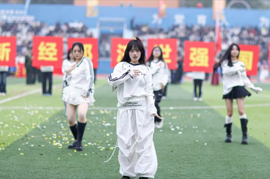 “气贯长虹,锐不可当;傲骨铮铮,斗志昂扬。且看方阵巍然,步履所至,皆是锋芒!”商院学子以“博学笃志,盛德日新,经邦济世,强国富民”作为口号,迈着矫健的步伐入场,为在场的师生带来了舞蹈《One Spark》,他们精神抖擞,神采奕奕,展示着朝气蓬勃的青春活力。