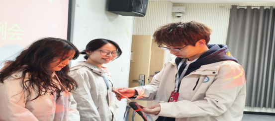仪式伊始,会议第一项重要议程是向全体学生会成员分发工作牌。在工牌分发环节,一个充满象征意义的“传递”仪式温情上演。主席团成员郑重地将工牌交到各位干部手中,这不仅是职责的托付,更是信任的传递。随后,干部们又细心的为自己的干事佩戴上工牌。这一递一接,一戴一正,仿佛使命与责任的接力棒在彼此间交接,象征着学生会服务精神的薪火相传。此刻,崭新的工牌在胸前闪亮,一份沉甸甸的集体荣誉感与传承力量也在每一位成员心中油然而生。