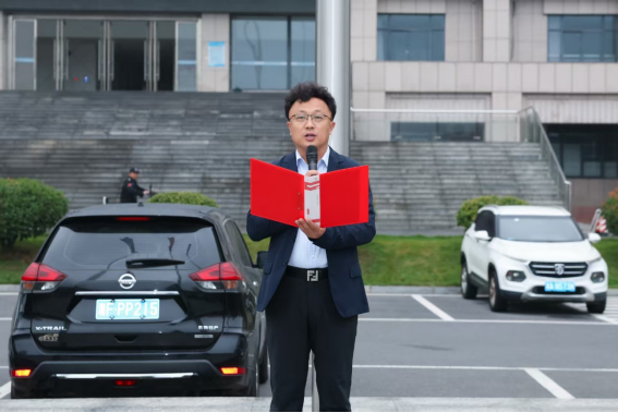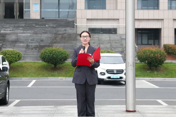 仪式最后,由来自法学2504班新生代表谢妤骞发言,谢妤骞也表示学风是大学之魂,她以学生的视角对“三三五一”进行了自己的理解,希望同学们从身边小事做起,最后倡议“三三五一”的进行。