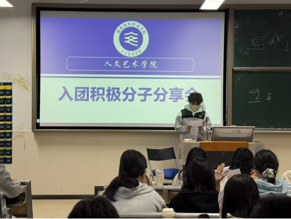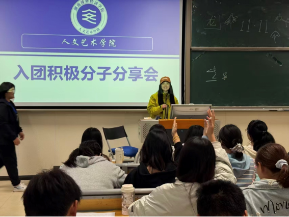 为了进一步推动湖南涉外经济学院共产主义青年团建设,加强入团积极分子彼此之间的交流,总结分享本学期团课的心得与收获,人文艺术学院于2025年10月20日12点在十二教209开展了本学期最后一次团课并举行入团积极分子分享会。
