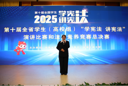 为深入推进宪法学习宣传教育,全面提升学生法治素养,2025年11月5日,第十届全省学生"学宪法 讲宪法"演讲比赛和法治素养竞赛(高校组)总决赛在湖南工商大学举行。人文艺术学院法学2507班万芊芊同学凭借扎实的专业功底与出色的现场表现,从校级选拔中脱颖而出,成功晋级省级决赛,并最终荣获省级一等奖。
