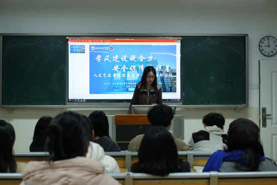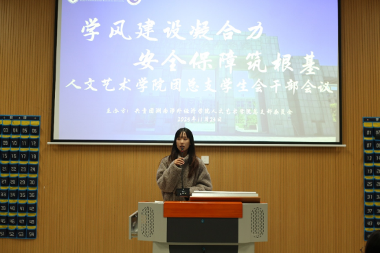 (人文艺术学院团总支书记龚钰婷在团总支学生会会议上讲话)