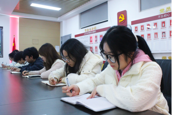 (学生干部认真记录会议内容)