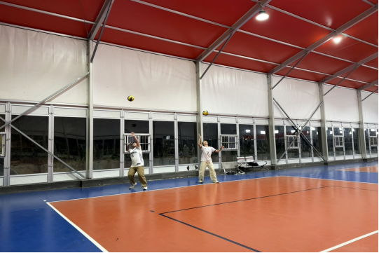 比赛尚未开始,排球场已被浓厚的氛围包裹。参赛队员们在场地上不断的热身、传球、扣杀,训练着自己的专业技能,每一个动作都充满力量与默契。现场紧张又兴奋的气氛扑面而来迎来,为后面的比赛增添更多的活力与精彩。