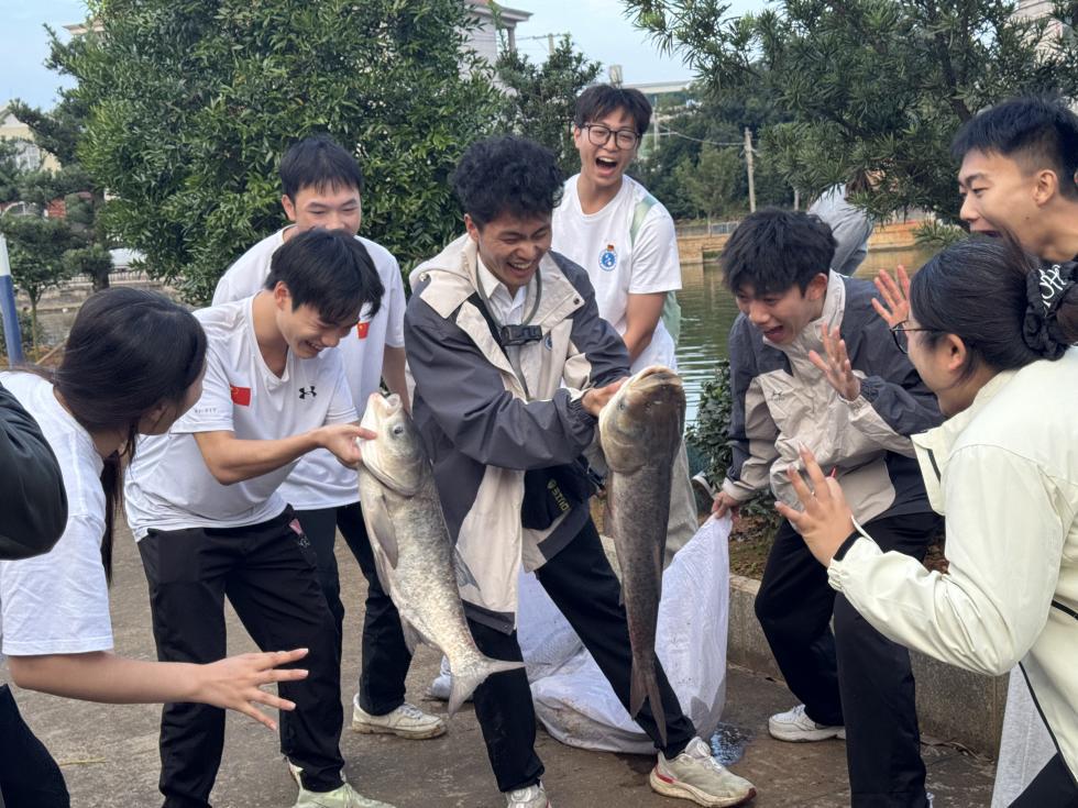 村边小河畔的共同劳动更显温情。师生与村民一同参与捞鱼劳作,欢声笑语中不仅体验了农事乐趣,更拉近了心与心的距离。“这种接地气的互动,让我们真正懂了乡村的需求。” 参与实践的学生党员说道。据悉,学校已计划投入专项经费,协助村里打造标准化共享菜田,推出面向教职工和周边社区居民的 “认养套餐”,让农户实现 “种植有收益、体验有回报”。