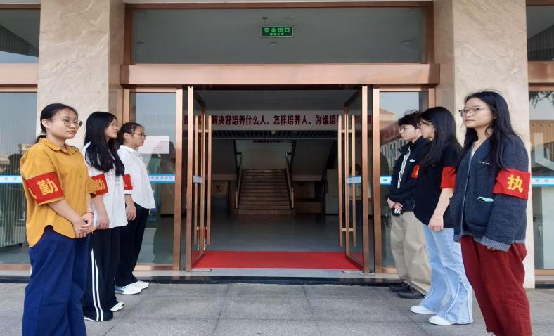 活动现场,全体督察人员与无烟劝导员准时到岗、统一规范、分工明确,迅速投入巡查工作。大家严格对照校园“三三五一”文明行为规范,对教学楼走廊、楼梯间、卫生间、教室及周边公共区域进行全面细致检查,重点引导同学们落实三带、三要、五不、一保持要求,自觉带齐书包、教材与学习用品,规范仪容仪表,主动将手机放入手机袋,不带食物进入教学楼,不在公共场所吸烟,共同维护课堂秩序与教学楼环境卫生。工作人员坚持文明执勤、礼貌沟通,以教育引导为主,对发现的吸烟、乱扔烟蒂、课堂纪律不规范等问题及时提醒、耐心劝导、现场纠正,引导同学们自觉遵守校园管理规定,主动维护公共环境秩序。工作人员全程跟踪记录,真实留存活动开展情况,全面展现学院文明创建的扎实举措与良好成效。